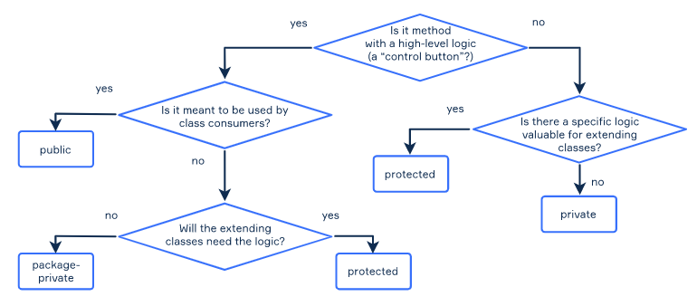 추상화되었지만, consumer는 쓰지 않고, extending class가 해당 로직이 필요하지 않으면 package-private