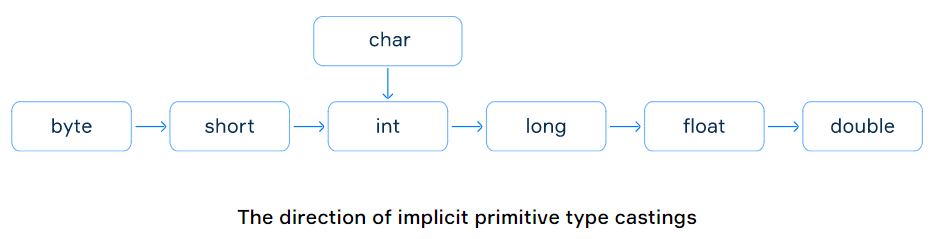 저런 관계는, 각각의 data-type이 표현하는 값의 범위에 의해 지정되는데, 넓은 범위를 표현하는 타입으로 변환될 때 Implicit 하게 casting 할 수 있다.