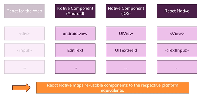 - 각 컴포넌트는 그에 해당하는 Native code와 매칭된 구조